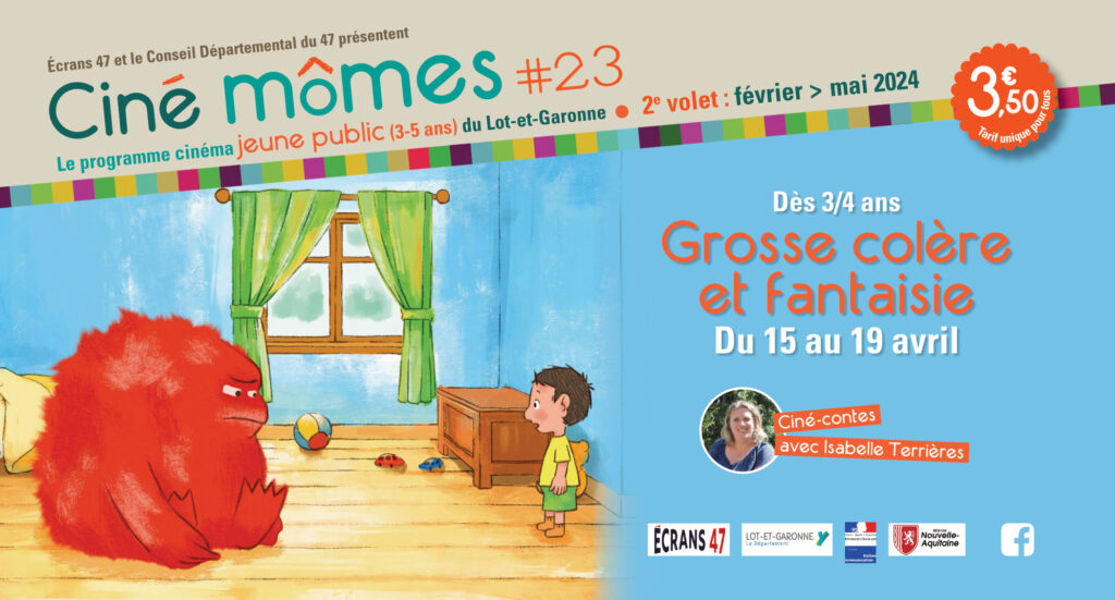 A partir de 3/4 ans – Tarif unique pour tous : 3,50 € – A collectionner chaque mois : le flyer jeux du programme ! Le programme GROSSE COLERE ET FANTAISIES / CINE CONTES 4 histoires...